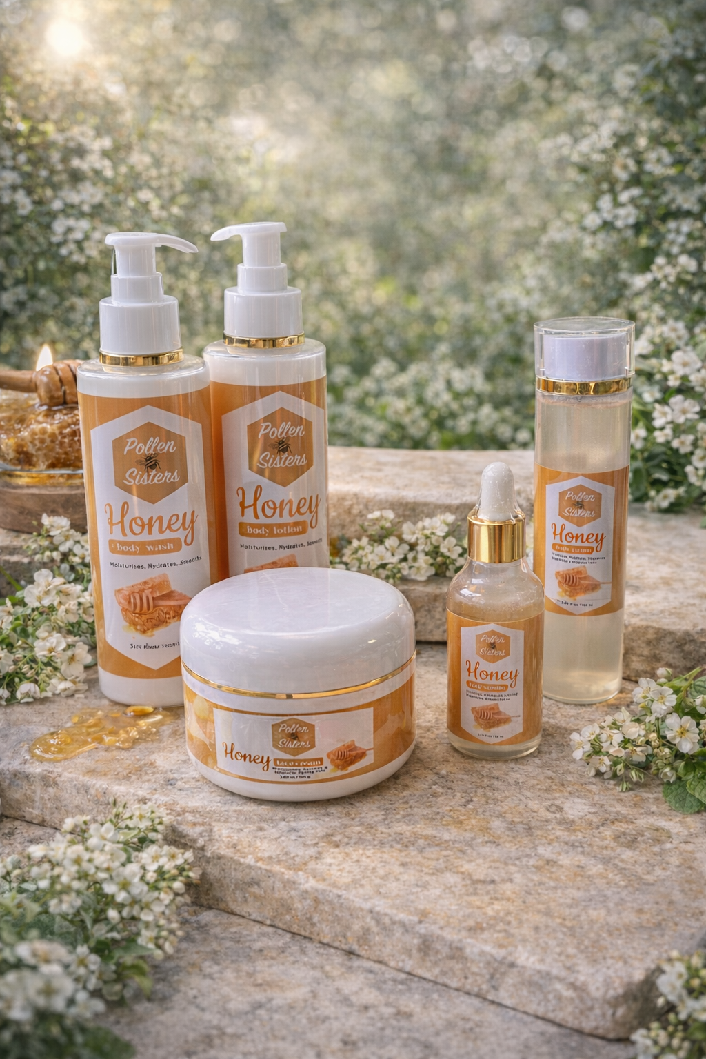 Honey is a natural powerhouse for your skin and body, packed with antioxidants, vitamins, and antimicrobial properties. It hydrates, soothes, and rejuvenates the skin, promoting a healthy glow while protecting against dryness. Honey's natural enzymes also help to cleanse and heal, making it an essential ingredient for nourishing and revitalising your body, inside and out.